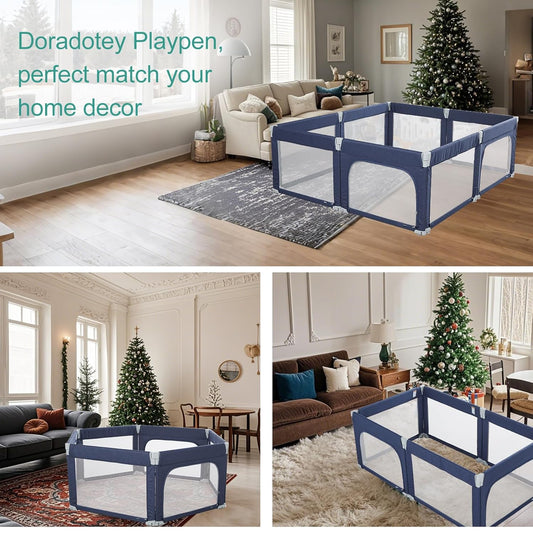 Doradotey Baby Playpen Foldable for Toddlers 1-3, Size and Shape Adjustable Enclosure, 8-Panels Detachable Gate 79X71 Large Indoor Playard, Easy Assembly and Clean, Safety Fence Play Area, Blue